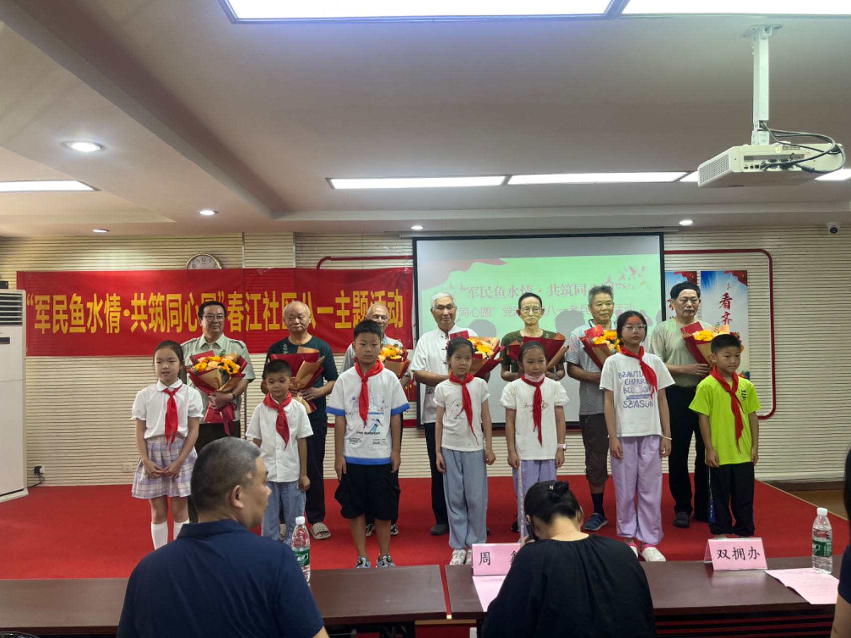活動開始,社區(qū)黨委書記周鑫發(fā)表開場致辭,少先隊員向老兵獻上鮮花,分享寄語,向老兵致以節(jié)日的祝賀和崇高的敬意,隨后,三名老兵代表分別分享了他們在軍旅生涯中的難忘經(jīng)歷和感人故事,話語打動了在場的每一位觀眾。社區(qū)代表和樓棟長們紛紛表示要銘記功勛,致敬老兵?;顒釉诰用瘾I唱《我和我的祖國》的歌聲中以及合影留念中落下帷幕。