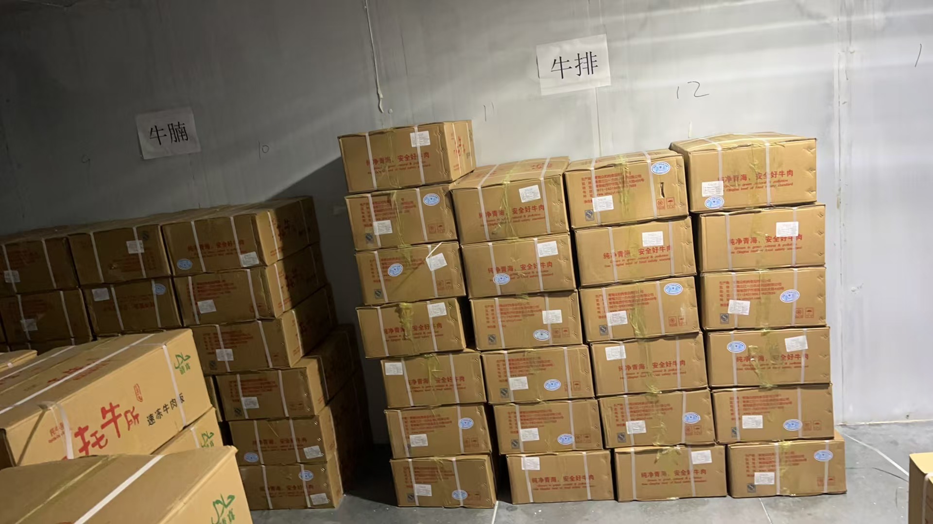 記者隨后來到位于南京市江寧區(qū)江寧鎮(zhèn)太康路的倉庫,里面擺放著一排排整齊堆疊的包裝盒,分類標(biāo)注著牛排、牛腩、牛腱子、羊排等各式產(chǎn)品?,F(xiàn)場打包的聲音很大,幾個(gè)小伙子忙著搬運(yùn)配貨,幾輛貨車正在倉庫外等候。