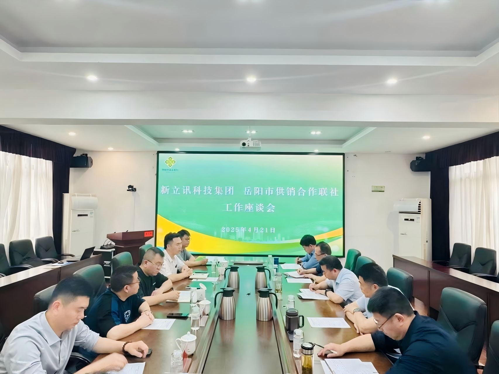 2025年4月21日,岳陽市供銷合作聯(lián)社&新立訊科技集團“華中農(nóng)產(chǎn)品交易中心工作座談會”在岳陽市供銷合作聯(lián)社召開。岳陽市社黨委書記、理事會主任向風(fēng)行,市社黨委副書記、監(jiān)事會主任羅海,市社黨委委員、副主任周傳龍、鄒變龍、周傲文,岳陽農(nóng)發(fā)集團總工程師李政,新立訊科技集團董事長(兼青海、華東、川藏交易中心董事長)毛霖等與會嘉賓出席并參與座談。