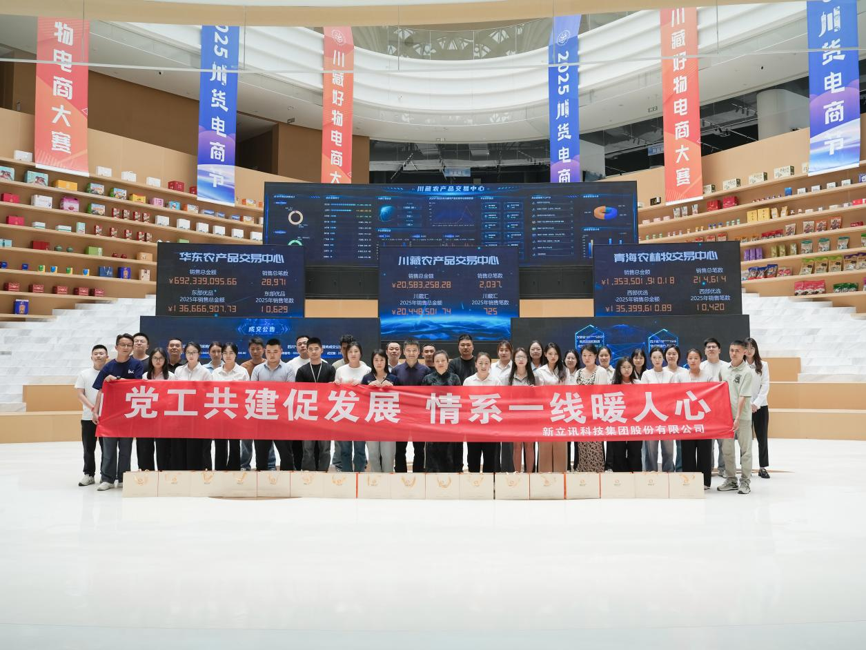 在喜迎中國共產(chǎn)黨成立104周年之際,新立訊科技集團黨支部聯(lián)合工會于2025年6月27日開展"黨工共建促發(fā)展 情系一線暖人心"主題慰問活動。公司黨員代表及工會主席王宗蘭前往川藏農(nóng)產(chǎn)品交易中心,為協(xié)辦四川省“2025川貨電商節(jié)”川藏好物電商大賽堅守崗位的一線員工送去慰問品和深切關(guān)懷。
