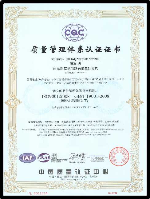 質(zhì)量管理體系的建立和貫徹運(yùn)行,將有助于新立訊完善管理流程,提高運(yùn)營(yíng)效率,也為進(jìn)一步的市場(chǎng)開拓提供了強(qiáng)有力的支撐,同時(shí)綜合提升新立訊企業(yè)整體形象及核心競(jìng)爭(zhēng)力。至此,新立訊企業(yè)主要經(jīng)營(yíng)項(xiàng),均通過(guò)ISO質(zhì)量體系認(rèn)證。