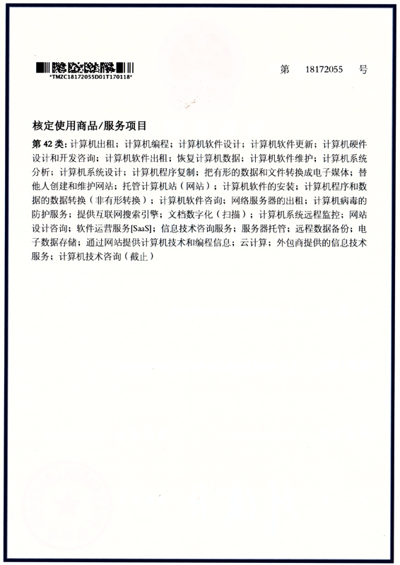 “龜兔賽跑”商標(biāo)注冊號(hào)為“18172055”,同時(shí)該商標(biāo)明確標(biāo)示核定使用商品/服務(wù)項(xiàng)目共計(jì)32項(xiàng),具體包括:計(jì)算機(jī)出租;計(jì)算機(jī)編程;計(jì)算機(jī)軟件設(shè)計(jì);計(jì)算機(jī)軟件更新;計(jì)算機(jī)硬件設(shè)計(jì)和開發(fā)咨詢;計(jì)算機(jī)軟件出租;恢復(fù)計(jì)算機(jī)數(shù)據(jù);計(jì)算機(jī)軟件維護(hù);計(jì)算機(jī)系統(tǒng)分析;計(jì)算機(jī)系統(tǒng)設(shè)計(jì);計(jì)算機(jī)程序復(fù)制;把有形的數(shù)據(jù)和文件轉(zhuǎn)換成電子媒體;替他人創(chuàng)建和維護(hù)網(wǎng)站;托管計(jì)算機(jī)站(網(wǎng)站);計(jì)算機(jī)軟件的安裝;計(jì)算機(jī)程序和數(shù)據(jù)的數(shù)據(jù)轉(zhuǎn)換(非有形轉(zhuǎn)換);計(jì)算機(jī)軟件咨詢;網(wǎng)絡(luò)服務(wù)器的出租;計(jì)算機(jī)病毒的防護(hù)服務(wù);提供互聯(lián)網(wǎng)搜索引擎;文檔數(shù)字化(掃描);計(jì)算機(jī)系統(tǒng)遠(yuǎn)程監(jiān)控;網(wǎng)站設(shè)計(jì)咨詢;軟件運(yùn)維服務(wù)[SaaS];信息技術(shù)咨詢服務(wù);服務(wù)器托管;遠(yuǎn)程數(shù)據(jù)備份;電子數(shù)據(jù)存儲(chǔ);通過網(wǎng)站提供計(jì)算機(jī)技術(shù)咨詢。