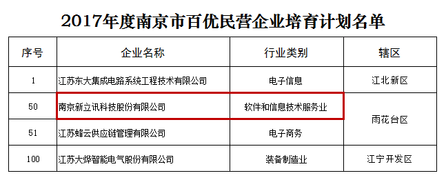 日前,南京市經(jīng)濟(jì)和信息化委員會發(fā)文(寧經(jīng)信民營[2017]415號),公布了南京市最新“百優(yōu)民營企業(yè)培育計劃”名單,南京新立訊科技股份有限公司等一批優(yōu)秀民營企業(yè)榮譽(yù)入選“2017年度南京市百優(yōu)民營企業(yè)培育計劃”,并榮獲“2017年度南京市百優(yōu)民營企業(yè)”。