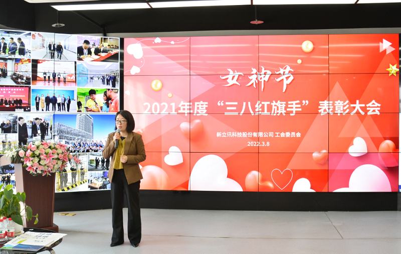 為豐富新立訊女職工的文化生活,表彰先進(jìn),增強(qiáng)公司凝聚力,在第112個“三八”國際勞動婦女節(jié)來臨之際,新立訊黨支部及工會委員會在總部隆重召開三八國際婦女節(jié)表彰大會,大會由新立訊監(jiān)事會主席、工會主席王宗蘭主持。
