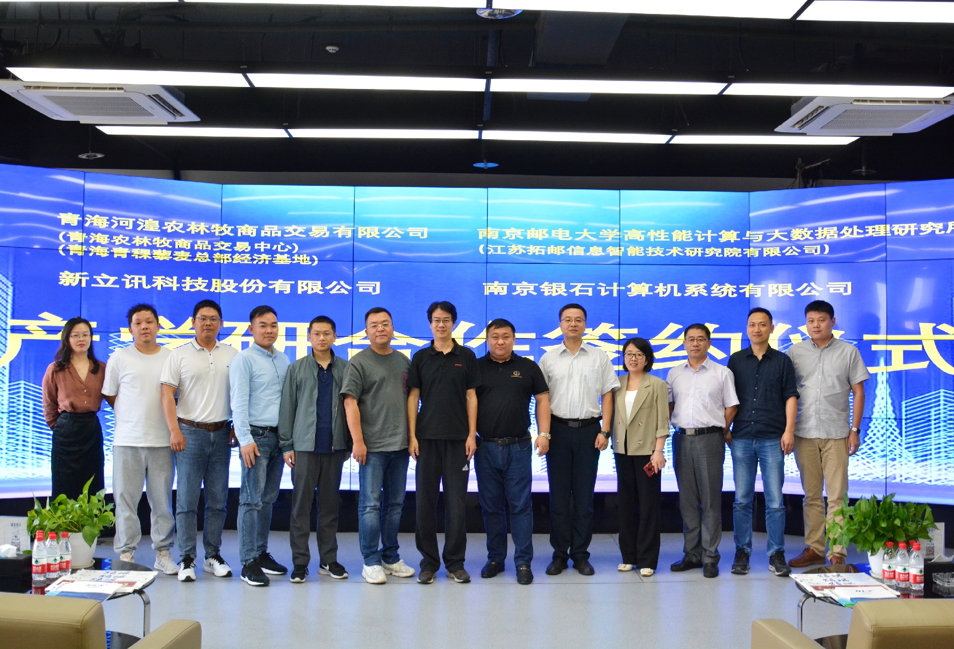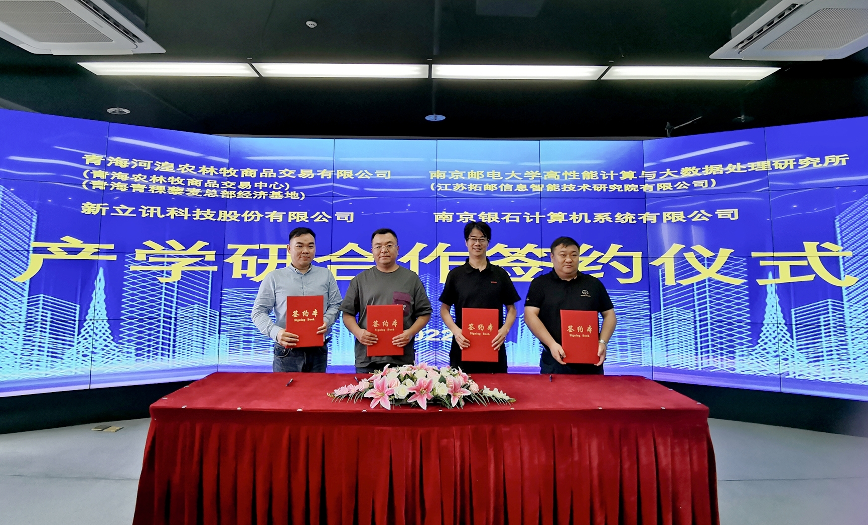 2022年9月21日,新立訊科技股份有限公司與南京郵電大學高性能計算與大數(shù)據(jù)處理研究所(江蘇拓郵信息智能技術(shù)研究院有限公司)、青海農(nóng)林牧商品交易中心(青海青稞藜麥總部經(jīng)濟基地)、南京銀石計算機系統(tǒng)有限公司在新立訊總部簽署“產(chǎn)學研合作協(xié)議”,南京郵電大學教授、博士生導師/高性能計算研究所副所長季一木、碩士生導師劉向東博士、碩士生導師吳飛博士、交易中心副總經(jīng)理楊慶慶、銀石計算機總經(jīng)理陳偉及新立訊董事長毛霖攜研發(fā)中心及管理層出席。