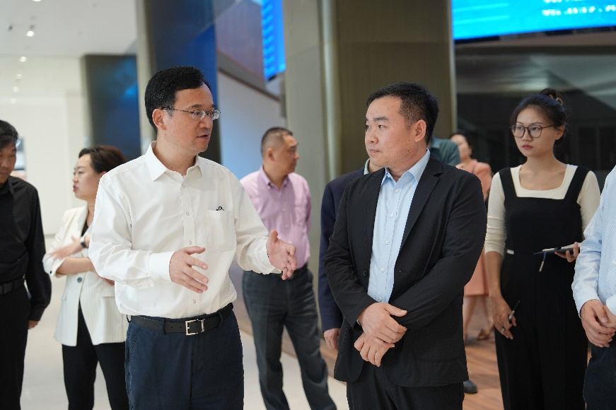 2023年10月19日,江蘇省商務(wù)廳二級巡視員王存一行蒞臨華東農(nóng)產(chǎn)品交易中心調(diào)研。鹽都區(qū)委常委、統(tǒng)戰(zhàn)部部長呂楊,交易中心副總經(jīng)理楊慶慶、商管總經(jīng)理吳雄等在家管理層陪同調(diào)研。
