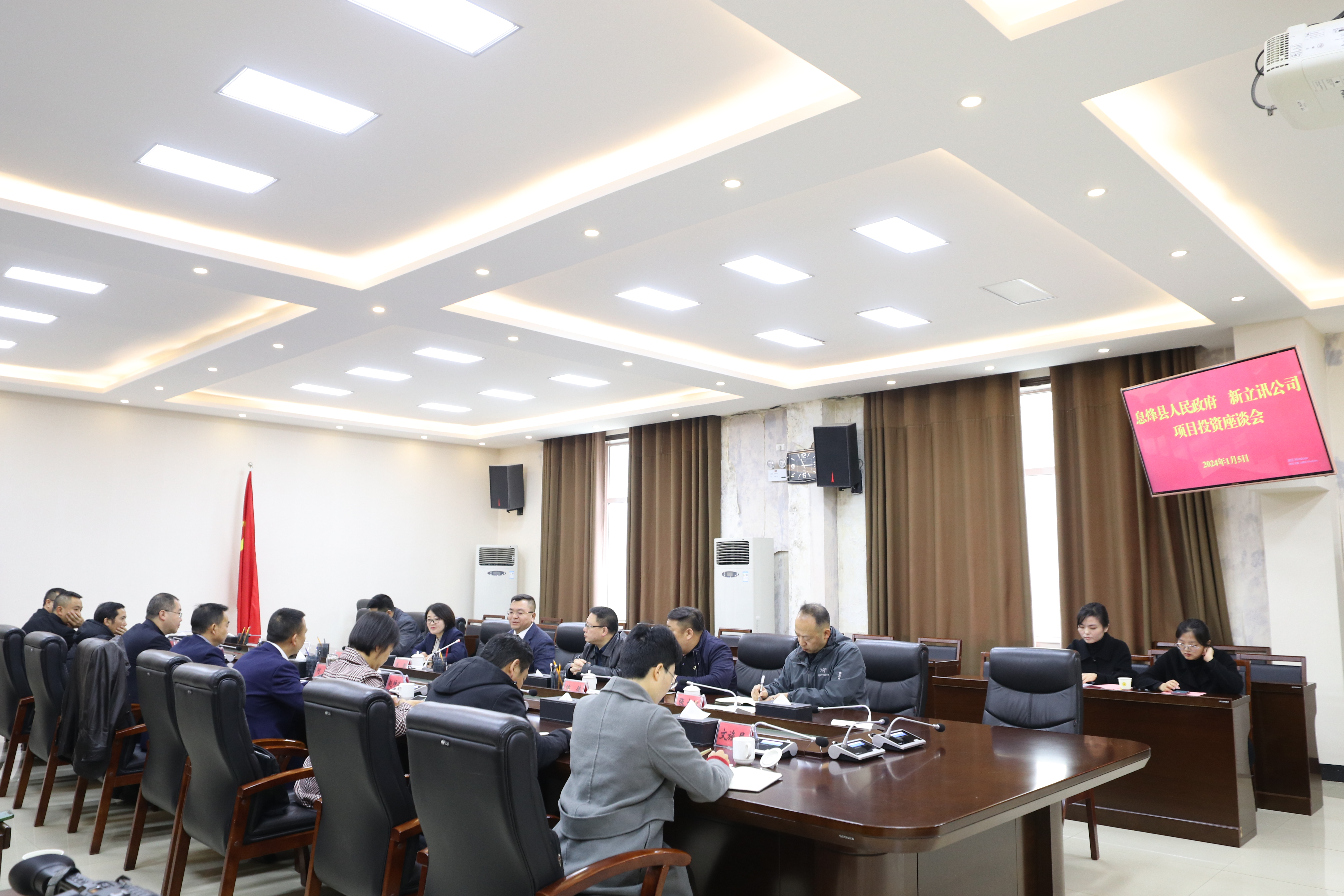 2024年1月5日上午,“西南農(nóng)產(chǎn)品交易中心招引框架協(xié)議簽約儀式”在貴陽市息烽縣人民政府常務(wù)會(huì)議室舉行。息烽縣委副書記、縣人民政府縣長何明,副縣長方超,新立訊董事長毛霖,新立訊法律總顧問、主任律師敖霖,新立訊副總經(jīng)理兼董事會(huì)秘書李偉及管理層代表出席??h政府辦、縣財(cái)政局、縣農(nóng)業(yè)農(nóng)村局、縣商務(wù)局、縣文旅局、縣投促局、縣供銷社、縣旅投公司、縣農(nóng)投公司主要負(fù)責(zé)人共同出席。簽約儀式由息烽經(jīng)開區(qū)管委會(huì)副主任、縣工業(yè)和信息化局局長趙坤倫主持。