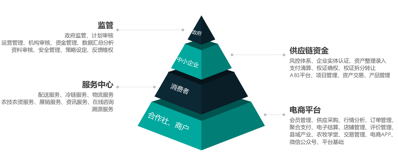 農產業(yè)交易互聯(lián)網平臺包含了農副產品交易云平臺,數據中臺、以及鑒真溯源云平臺,三位一體形成閉...